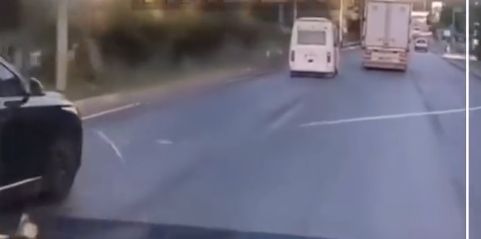 Kaza sırasında çok hızlı olduğu görülen motosiklet sürücüsü makas atarken, sol şeride geçen minibüse çarparak metrelerce sürüklendi.