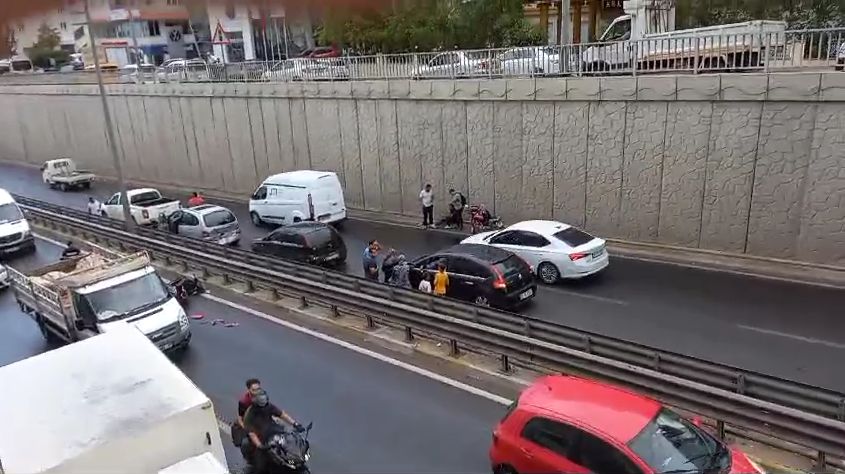 Biri motosiklet olmak üzere çok sayıda aracın karıştığı zincirleme trafik kazasında motosiklet sürücüsü çarpmanın şiddetiyle karşı şeride fırladı.