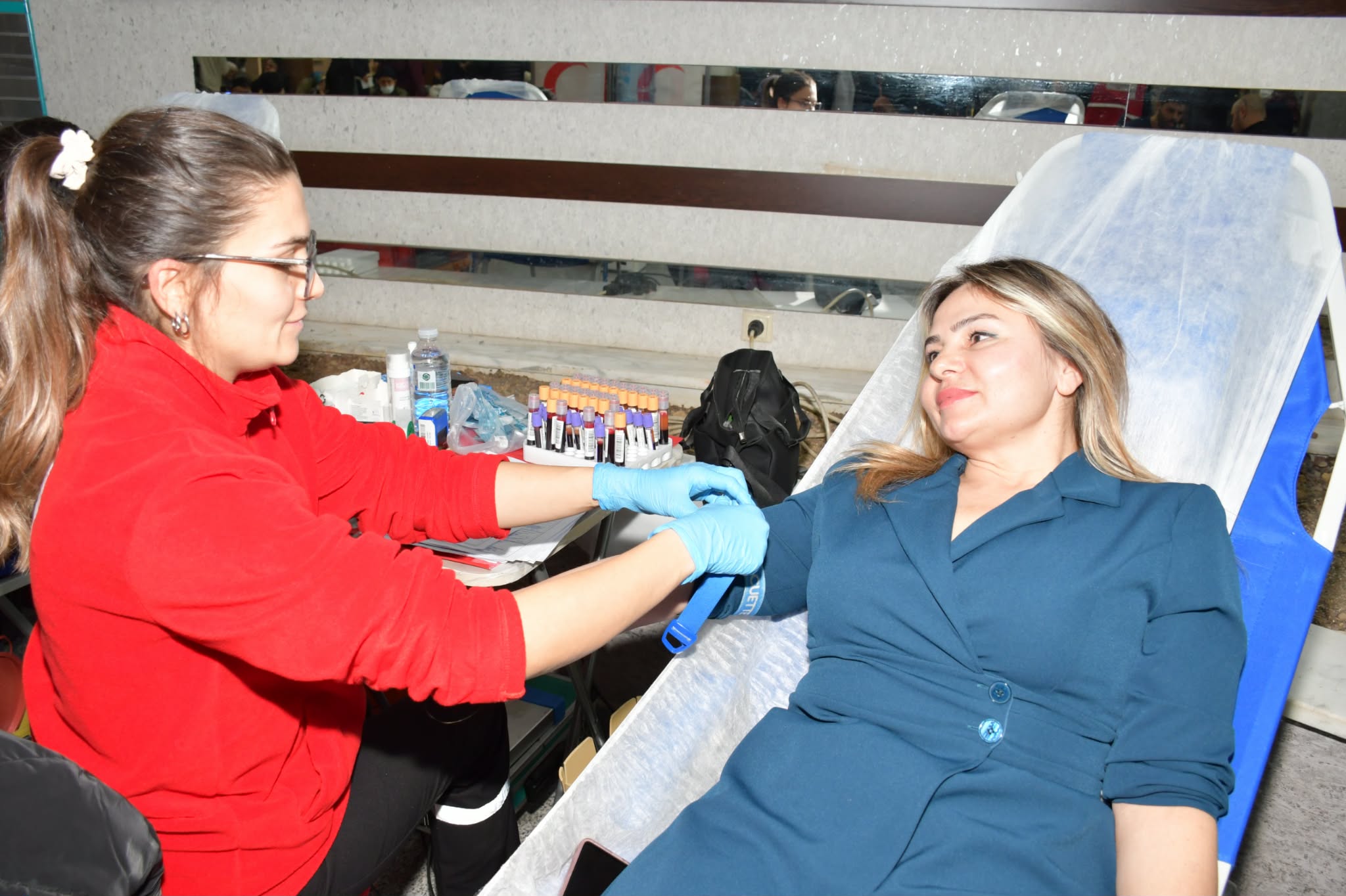 Türk Kızılay’ı sağlık çalışanları sabah 10.00’dan 17.30‘a kadar hastanede kan bağışlarını kabul etti.