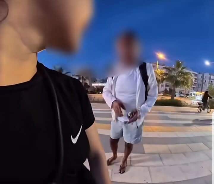 Yaşadığı korku dolu anları cep telefonu kamerasıyla saniye saniye kaydeden kadın, şahsı defalarca İngilizce ve Türkçe olarak "Gider misin?" (Can you leave?) diyerek uyardı.