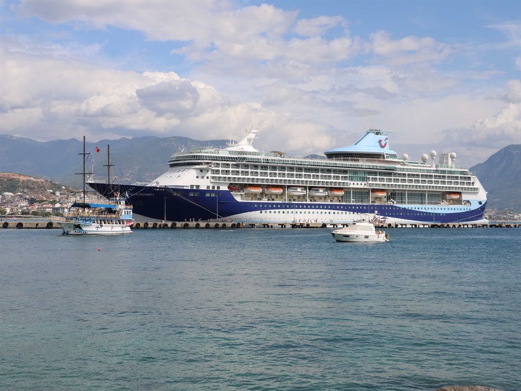 Çoğunluğu İngiltere vatandaşı olmak üzere toplamda bin 788 turist ve 728 personelin bulunduğu gemi sabah saatlerinde Alanya Limanı'na demirledi.