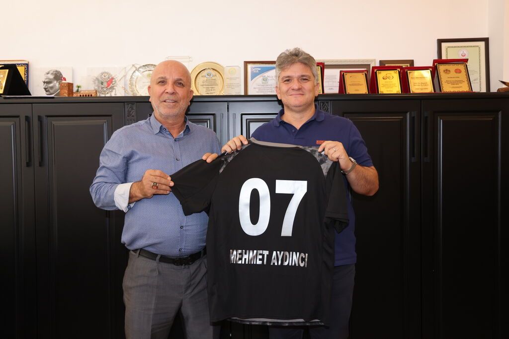 Başkan Hasan Çavuşoğlu, ziyaretin anısına Aydıncı'ya forma ve teşekkür kupası takdim etti.