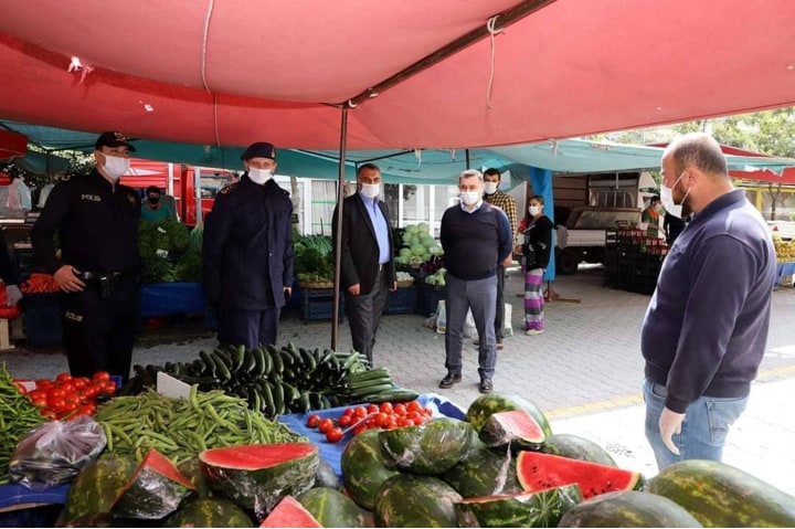 Alanya protokolü pazar ve caddeleri dolaşarak Coronavirüs tedbirleri kapsamında alınan önlemleri denetledi...