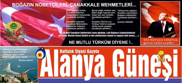 Alanya Güneşi Gazetesi İmtiyaz sahibi ve Genel Yayın Yönetmeni ;Şair-yazar ve gazeteci İbrahim Akdağ, Çanakkale Zaferinin 105. yıldönümünde Çanakkale şehitlerine ithaf ettiği ve kendi yazdığı bir şiir ile Şehitlerimizi andı...