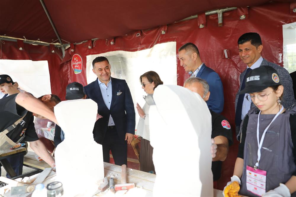 16. Uluslararası Alanya Taş Heykel Sempozyumu çalışma alanında öğrencilerin heykeltıraşlarla çalışmasını değerlendiren Alanya Belediye Başkanı Adem Murat Yücel; “16 yıldır düzenlenen sempozyuma her yıl farklı okullardan öğrenciler davet ediyoruz. Amacımız öğrencilerimizi heykel sanatı ve sanatçısıyla buluşturmak ve aynı zamanda ileriki yaşamlarında heykelle ilgili bölüm seçmek isteyen öğrencilere de destek olmak. Bugün öğrencilerimizin yaptığı heykeller, 29 Kasım’da düzenleyeceğimiz sempozyumun kapanış programında sergilenecek.” dedi.