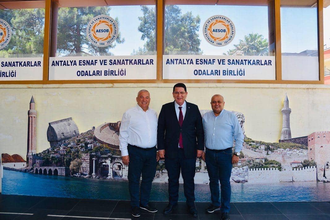 Alanya Ticaret ve Sanayi (ALTSO) Başkanı Mehmet Şahin ve Aynı zamanda AESOB Yönetiminde de yer alan Türkiye Bakkallar ve Bayiler Esnaf ve Sanatkarları Federasyonu Yönetim Kurulu Üyesi de Velittin Yenialp, geçtiğimiz günlerde gerçekleşen seçimlerde güven tazeleyen AESOB Başkanı Adlıhan Dere’ye hayırlı olsun ziyaretinde bulundu...