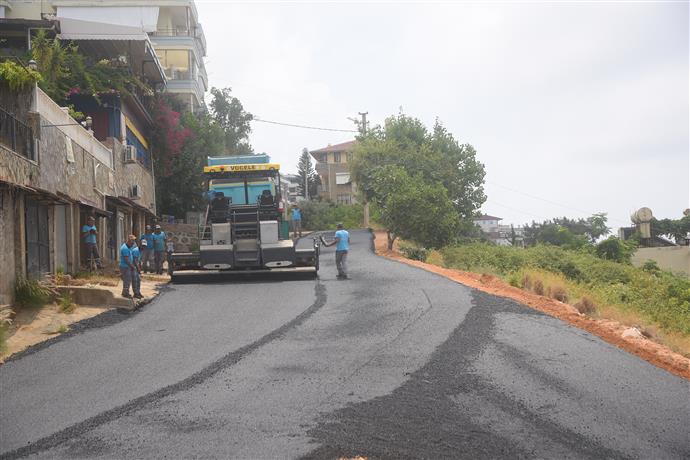 Alanya’nın Küçükhasbahçe, Avsallar, Akdam mahallelerinde yol düzenleme ve kotlama çalışmalarını tamamlayan ekipler, asfalt çalışmalarına başladı.