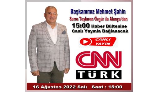 Alanya Ticaret ve Sanayi Odası (ALTSO) Başkanı Mehmet Şahin, CNN Türk ekranlarında canlı olarak yayınlanacak haber bültenine konuk olacak...