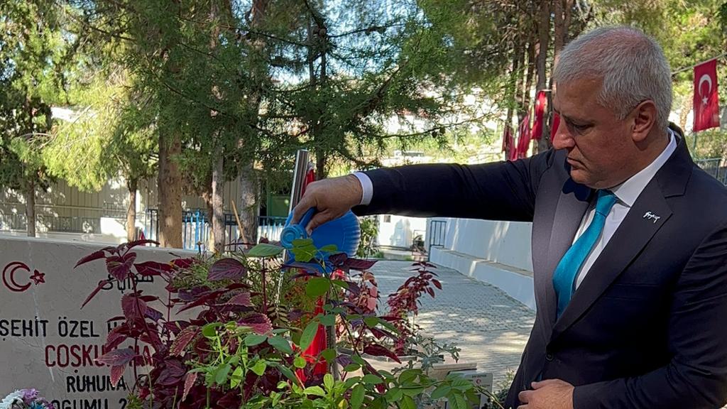 Alanya Ticaret ve Sanayi Odası Başkan Adayı Eray Erdem, 29 Ekim Cumhuriyet Bayramı’nın 99’uncu yılı nedeniyle Alanya Şehitliği’ni ziyaret etti. Ekibi ile birlikte şehitliğe giden Erdem, tüm şehitler için dua okudu. 27 Mart 2016 tarihinde Mardin'in Nusaybin İlçesi'nde PKK'lı teröristlerin tuzakladığı patlayıcıyı infilak ettirmeleri sonucu şehit olan Polis Özel Harekat (PÖH) memuru Coşkun Nazilli ile okul arkadaşı olan Eray Erdem, Nazilli’nin mezarı başında dua etti. Şehit Coşkun Nazilli’nin mezarı başında duygusal anlar yaşayan Eray Erdem, ardından Nazilli’nin Annesi Sultan Nazilli’yi ziyaret etti. Ziyarette Sultan anne diye hitap ettiği Sultan Nazilli’nin elini öpen Erdem, “O bir kahramandı sen de kahraman annesi. Coşkun gibi yürekli mert bir çocuk yetiştirdiğin için bu ülke sen senin gibi şehit annelerine müteşekkir. Coşkun benim de sınıf arkadaşımdı. Kendisini çok özlüyoruz. Nur içinde yatsın.” dedi.