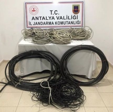 Alanya’da Türk Telekom’a ait olduğu belirtilen 130 metre kabloyu çalan 2 şüpheli jandarma ekiplerinden kaçamadı...