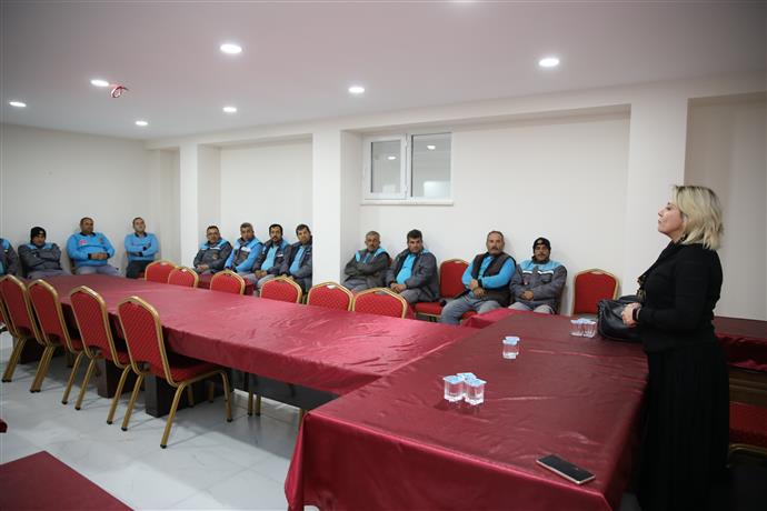 Alanya Belediyesi personelinin nitelik ve niceliklerini artırmak, verimliliği ve personel sağlığını artıracak kurum içi eğitim ve çalışmalar devam ediyor. Bu kapsamda Alanya Belediyesi Aile Kadın Destek Merkezi Sorumlusu Esra Yemez ve Beslenme ve Diyet Uzmanı Şule Yavuz Demir tarafından Payallar’da görev yapan personellere eğitim semineri verildi. Personellere kadına karşı şiddetle mücadele ve aile içi şiddetin önlenmesi ile kız-erkek çocuk yetiştirmenin önemi konularında temel bilgiler aktarılırken ayrıca sağlıklı beslenmenin iş ve gündelik hayata etkileri ile sağlıklı yaşamın sırları paylaşıldı.