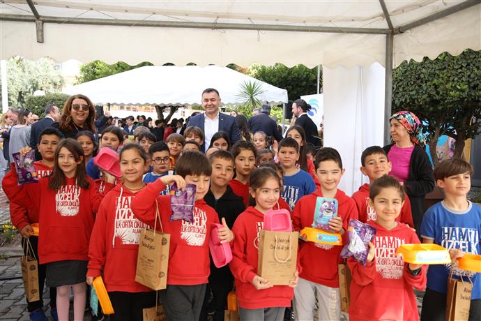 Belediye Başkanı Adem Murat Yücel, konuşmasının ardından etkinliğe katılan öğrencilere su kabı, kedi evi ve mama hediye etti.
