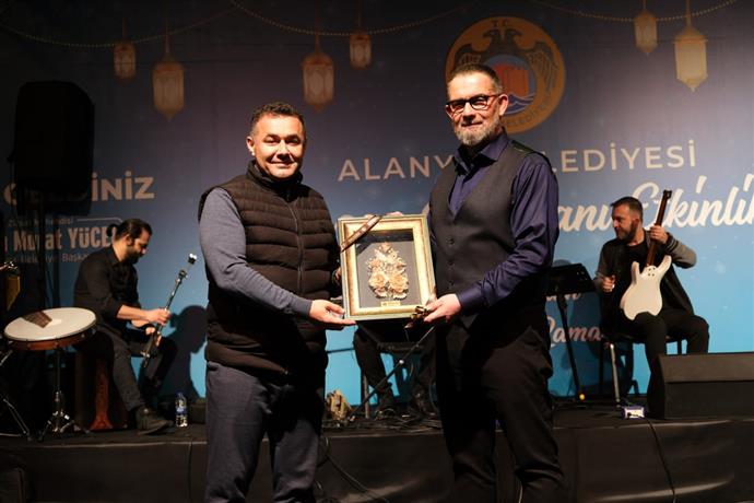 Alanya Belediyesi’nin geleneksel hale getirdiği Ramazan Meydanı etkinliklerinde ünlü şair İbrahim Sadri sahne aldı. Yağmurlu havaya rağmen hınca hınç dolan Ramazan Meydanı binlerce Alanyalıya muhteşem bir akşam daha yaşattı. Alanya Belediye Başkanı Adem Murat Yücel, İbrahim Sadri’ye hediye takdim ederek, “Bizlere unutulmaz bir akşam yaşatan değerli sanatçımıza şükranlarımı sunuyorum.” dedi.
