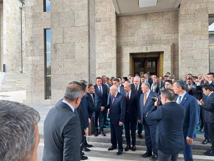 Başkan Yücel ve beraberindekiler ilk olarak Türkiye Büyük Millet Meclisi’nde MHP Genel Başkanı Devlet Bahçeli’nin katılımı ile gerçekleştirilen 28. Yasama Dönemi 1. Yasama Yılı’nın ilk Milliyetçi Hareket Partisi Grup Toplantısı’na katıldı. TBMM’de Genel Başkan Bahçeli’yi karşılayan Başkan Yücel, “Toplantımızın; ülkemize ve milletimize hayırlı, uğurlu olmasını diliyorum.” dedi.