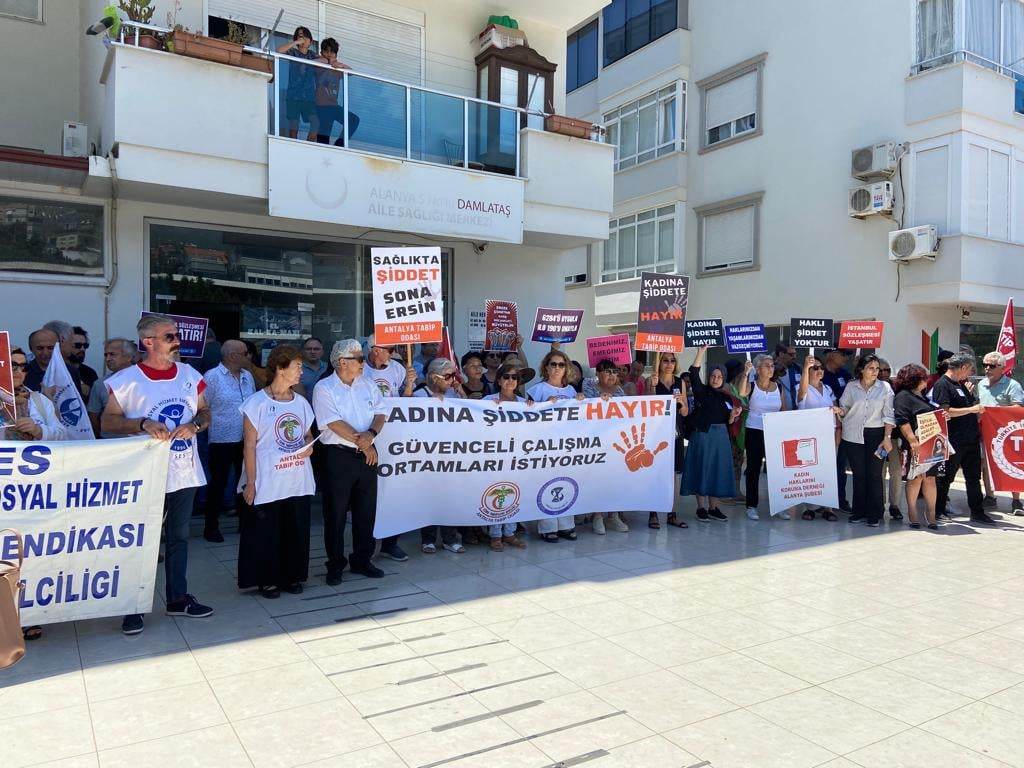 Alanya'nın Küçükhasbahçe mahallesinde ki sağlık ocağında görevli kadın doktorun, çalıştığı aile sağlığı merkezinde eşi tarafından bıçakla öldürülmesi protesto edildi...