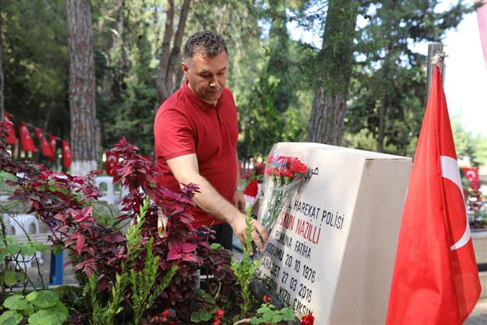 Alanya Belediye Başkanı Adem Murat Yücel, Kurban Bayramı öncesi her sene olduğu gibi Alanya Garnizon Şehitliği ve kimsesiz mezarlıkları ziyaret ederek dua etti. Başkan Yücel daha sonra Belediye Mezarlığı’nda vatandaşlara çiçek dağıttı.
