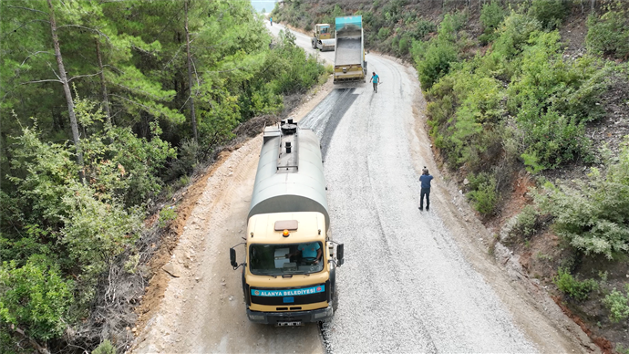 Alanya Belediyesi kırsal mahallelerde başlattığı asfalt çalışmalarına aralıksız devam ediyor. Çalışmalar kapsamında Üzümlü Yolu genişletilerek asfaltla kaplandı. 4 kilometre yolda önce dar olan kısımlar genişletildi.