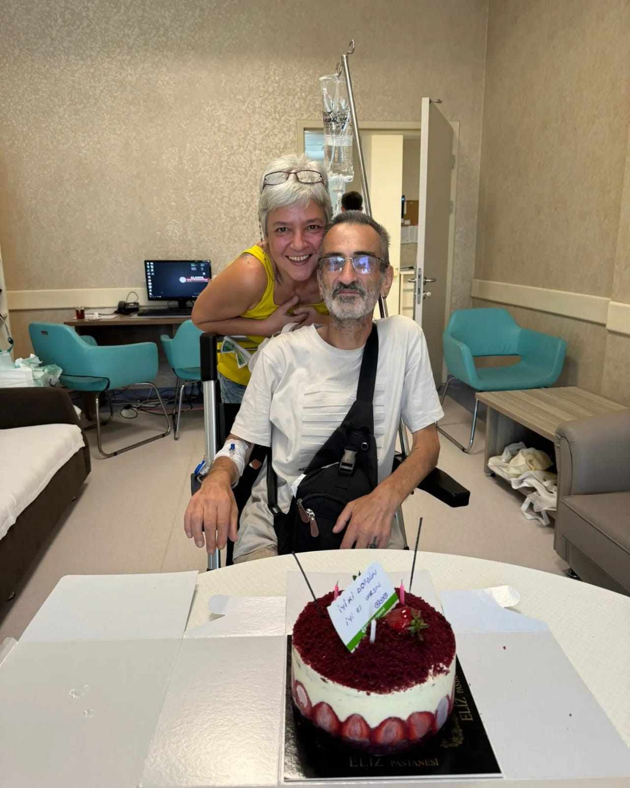 Hakan Tüzün’ün sistemden doğum günü olduğunu öğrenen sağlık çalışanları hasta ve hasta yakınına moral vermek, onu doğum gününde yalnız bırakmamak adına yaş pasta alarak sürpriz kutlama yaptı.