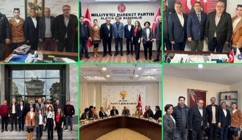 Daha sonra Antalya Büyükşehir Belediyesi Alanya İlçe Hizmetleri Şube Müdürü Gazi Öten'i ziyaret eden ALGC heyeti, yeni görevinde Öten’e başarılar diledi. Ziyaret turuna Milliyetçi Hareket Partisi (MHP) Alanya İlçe Başkanı Mustafa Sünbül ile devam eden ALGC yönetimi, Sünbül’ü makamında ziyaret etti. Teşkilat çalışmaları hakkında cemiyet üyelerine bilgi veren Sünbül, ziyaretten duyduğu memnuniyeti dile getirdi.