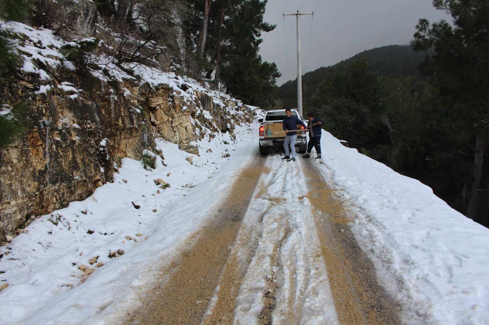 Büyükşehir ekipleri Finike'nin Boldağ Mahallesi kırsal yolunun trafiğe açık kalması için de yoğun çaba gösteriyor. Kar yağışı sonrası buzlanma meydana gelen yüksek kesimlerdeki yollarda Antalya Büyükşehir Belediyesi İlçe Hizmetleri Daire Başkanlığı Finike Hizmet Birimi ekipleri, tuzlama çalışması gerçekleştirdi.