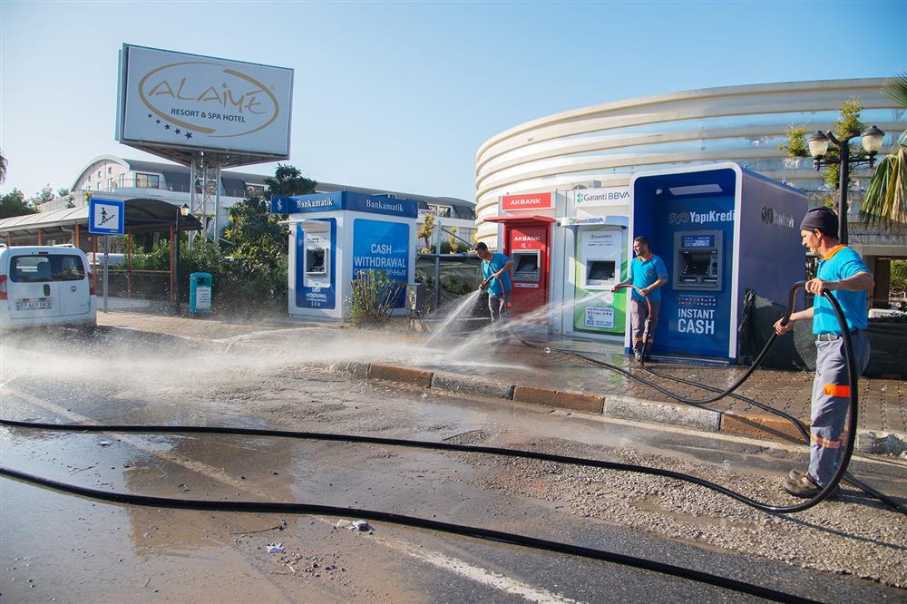 Kent temizliğine ve hijyene büyük önem veren Alanya Belediyesi ekipleri, bayramın huzur içinde geçmesi için çalışmalarını aralıksız sürdürüyor. Bu kapsamda plan ve program dahilinde kentin hemen hemen her noktasında temizlik çalışması hassasiyetle yürütülüyor.