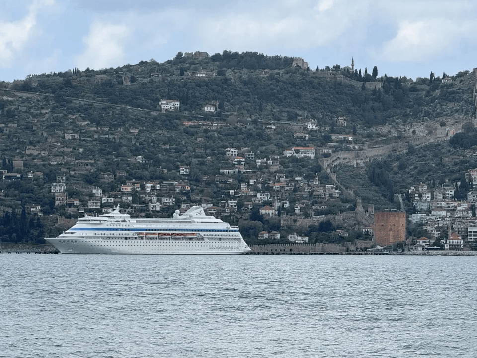 Antalya'dan demir aldıktan sonra rotasını Alanya'ya çeviren 193 metre uzunluğundaki kruvaziyer, sabah saatlerinde Alanya’ya ulaştı.