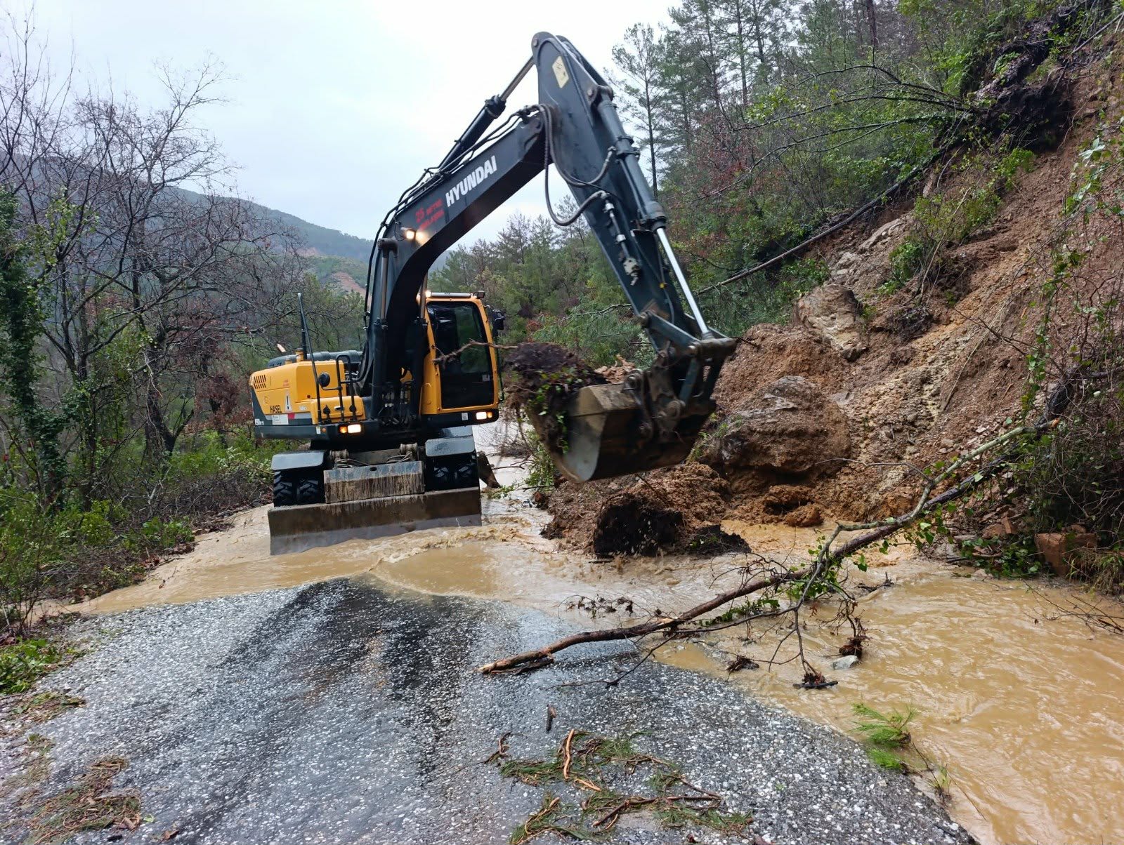 Antalya Büyükşehir Belediyesi ilçelerde etkili olan yağışın yol açtığı sel ve taşkın olaylarına müdahale ederken, Alanya’da da şiddetli yağışların kırsal yollarda yarattığı hasarlar onarılıyor.