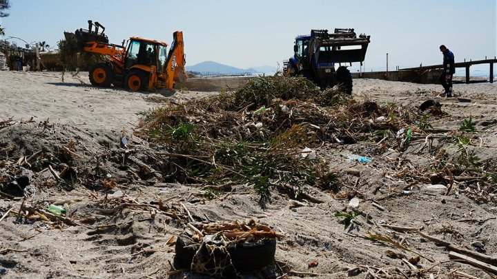 Geçtiğimiz günlerde etkili olan yoğun yağış ve olumsuz hava koşulları nedeniyle denizden gelen çeşitli atıkların sahile vurması ve sahil kesiminde biriken kumların bazı alt geçitlere dolması sonrası belediye ekipleri hızlı bir şekilde sahaya indi.