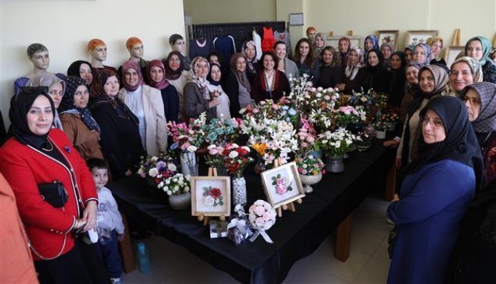 Açılış konuşmasını gerçekleştiren Meclis Üyesi İrem Yunusoğlu, hayat boyu öğrenmenin önemine dikkat çekerek, belediye olarak eğitime ve üretime destek vermeye devam ettiklerini ifade etti. Halk Eğitim Merkezi Müdür Yardımcısı Gül Koçyiğit Gönülalan ise kurs merkezlerinin hem üretim hem de sosyalleşme alanı olduğunu vurguladı. Kursiyerlerin hep birlikte gerçekleştirdikleri kurdele programının ardından kadınların ipek kozası ile hayata geçirdikleri yapay çiçekler ve dikiş kurslarında yaptıkları el emeği kıyafetler görücüye çıktı.