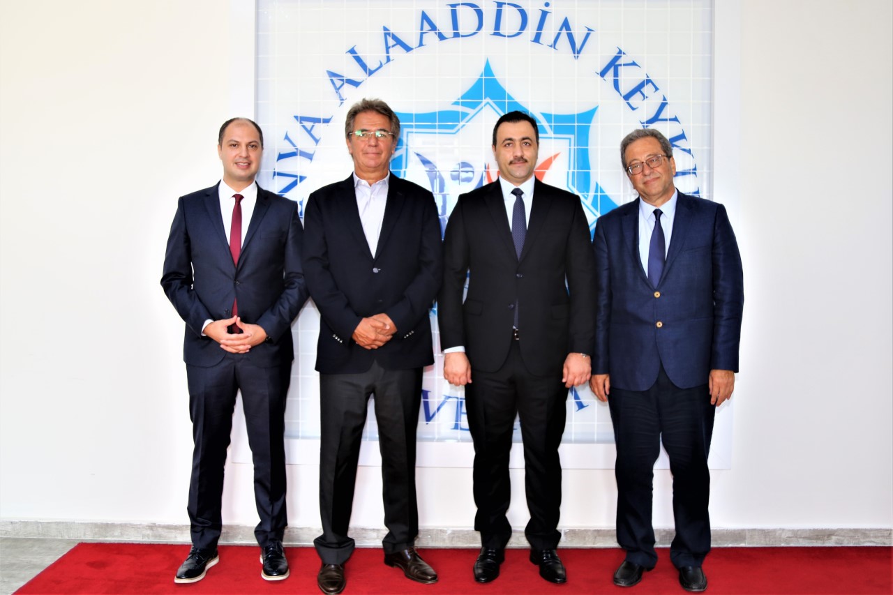 Alanya Hamdullah Emin Paşa Üniversitesi (AHEP) Rektörü Prof. Dr. Mehmet Durdu Öner, Mütevelli Heyeti Başkanı Hilmi Tokuş ile Genel Sekreter Dr. Öğr. Üyesi Murat Ertan Doğan, Alanya Alaaddin Keykubat Üniversitesi (ALKÜ) Rektörü Prof. Dr. Ekrem Kalan’ı makamında ziyaret ederek hayırlı olsun dileklerini ilettiler.