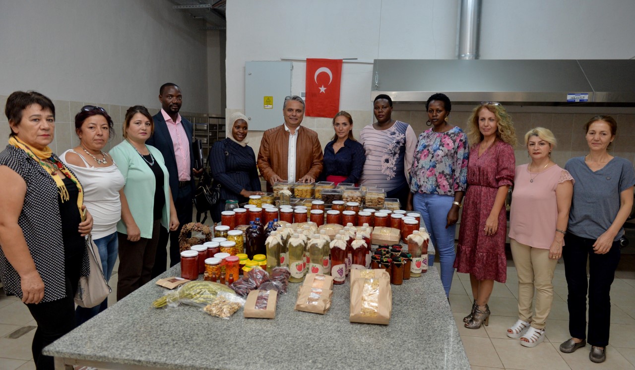 Bu çalışmaların bir ayağı ise tarhana, erişte, reçel gibi Anadolu’nun geleneksel lezzetlerini yapıp pazara sundukları mutfak atölyesi çalışması oldu. Yılbaşında başlayan bu çalışmaları çeşitli temaslar için Antalya’da bulunan Uganda heyeti ziyaret etti. Heyete Başkan Uysal ve Antalya Kadın Girişimcilik Kooperatifi Başkanı Keziban Kaya eşlik etti.