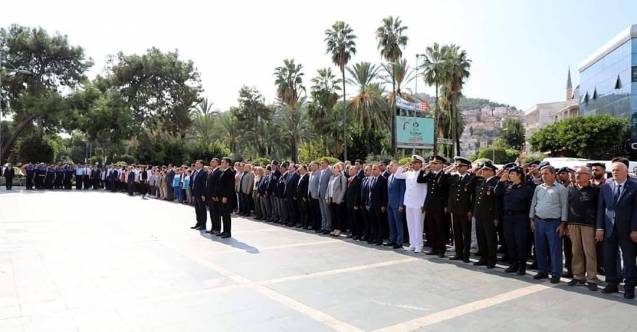 Alanya Kaymakamı Mustafa Harputlu ve Alanya Belediye Başkanı Adem Murat Yücel’in Atatürk Anıtı’na çelenk sunmasıyla başlayan tören, saygı duruşu ve İstiklal Marşının okunması ile sona erdi.