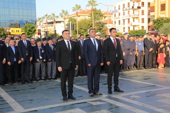 Resmi tören Alanya Kaymakamı Mustafa Harputlu ile Belediye Başkanı Adem Murat Yücel’in Atatürk anıtına çelenk bırakmasıyla başladı.