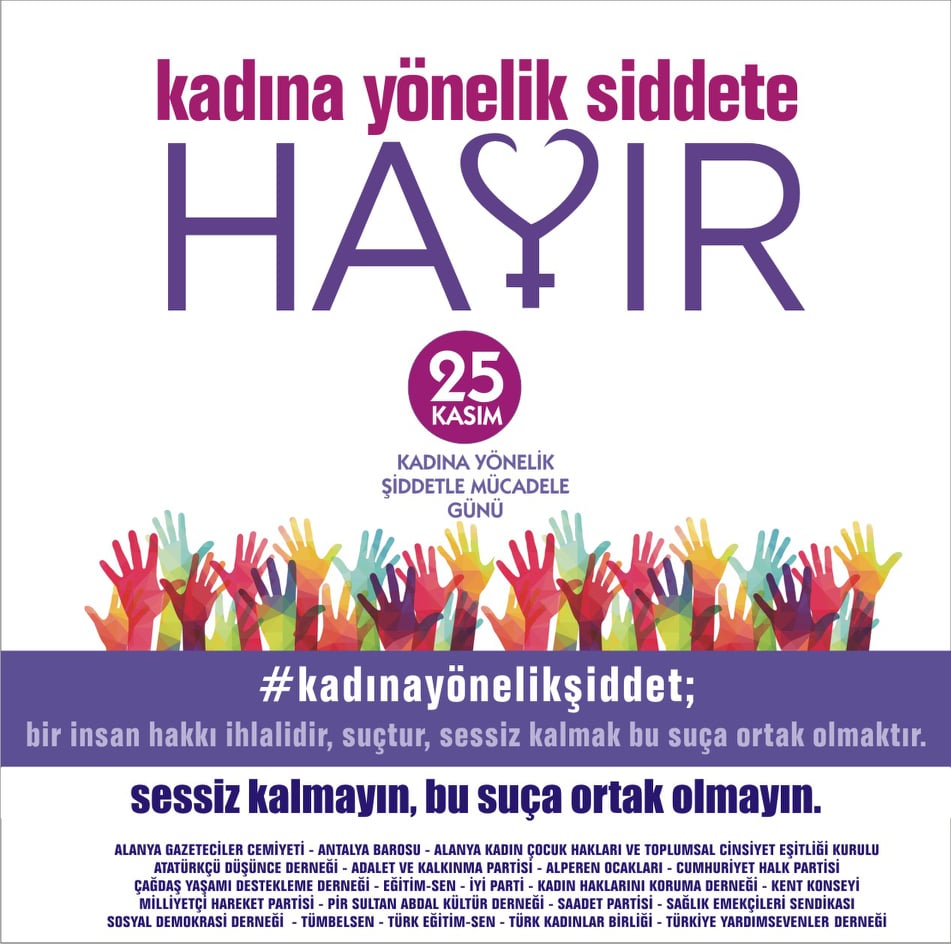 25 Kasım Kadına Karşı Şiddetle Mücadele Günü dolayısıyla Alanya’da 20 STK bir araya gelerek, #kadınakarşışiddeteHAYIR deklarasyonuna imza atmıştı.
