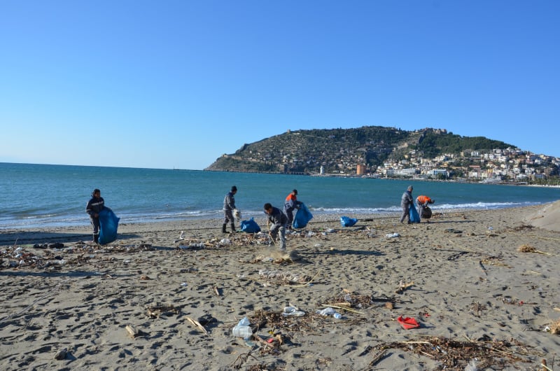 Alanya ve çevresinde hafta başında etkili olan şiddetli yağış ve fırtına sonrası Alanya plajları çöpler, çalı çırpı ve odunlarla dolup taştı. Bir taraftan dere sularıyla gelen odunlar diğer taraftan denizden gelen çöpler Alanya sahillerini farklı bir görüntüye kavuşturdu. Bu kötü görüntüyü ortadan kaldırmak için 22 kişilik bir ekip kuran Antalya Büyükşehir Belediyesi Alanya Hizmet Birimi, temizlik çalışması yaptı.
