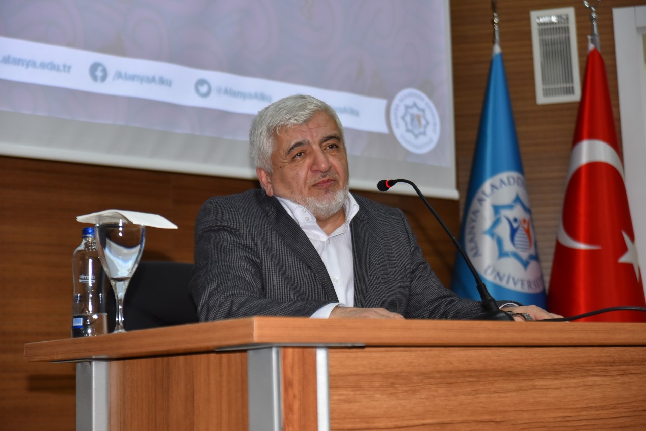 Alanya Alaaddin Keykubat Üniversitesi (ALKÜ) Eğitim Fakültesi Konferans Salonu’nda Fatih Sultan Mehmet Vakıf Üniversitesi İslami İlimler Fakültesi Öğr. Gör. Hamdi Arslan tarafından “Günümüz Dünyasında İyi İnsan Olabilmek” konulu konferans düzenlendi. Konferansa ALKÜ Rektörü Prof. Dr. Ekrem Kalan’ın yanı sıra Rektör Yardımcıları Prof. Dr. Can Tansel Tuğcu ile Prof. Dr. Selim Karahasanoğlu, Müstakil Sanayici ve İş Adamları Derneği (MÜSİAD) Alanya Şubesi Başkanı Mustafa Durusoy, ALKÜ Genel Sekreteri Emre Çalışkan, vatandaşlar ve öğrenciler katıldı.