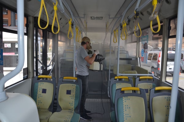Antalya Büyükşehir Belediyesi, Alanya Minibüsçüler ve Otobüsçüler Odası’na bağlı kooperatiflerin işbirliği ile Alanya’daki toplu ulaşım araçlarında korona önlemi alındı. Alanya merkez ve Kargıcak arasında çalışan ve servis sırasını tamamlayan halk otobüsleri tek tek uzman ekiplerce korona virüse karşı ilaçlanıyor ve dezenfekte ediliyor.