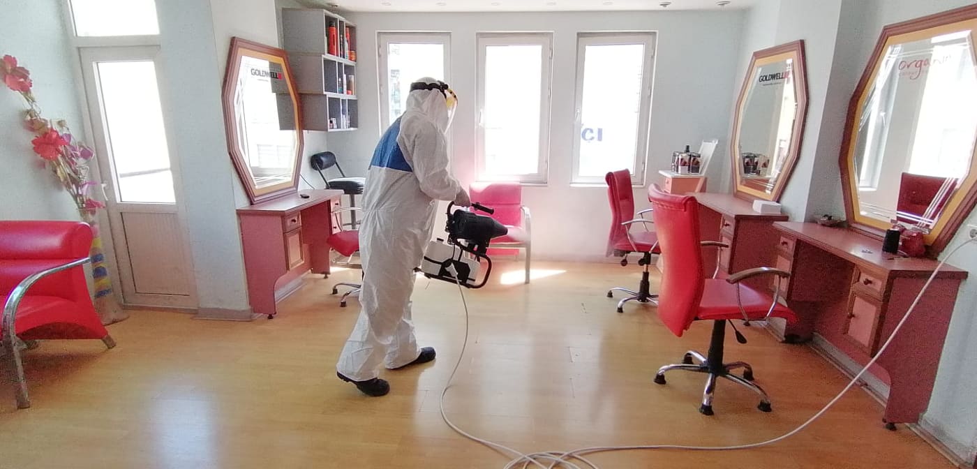 İKİ GÜNDE 420 BERBER-KUAFÖR VE  GÜZELLİK SALONU DEZENFEKTE EDİLDİ...