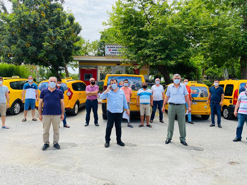 Alanya Şoförler Odası Başkanı Recep Çalış: Alanya'da oda bünyesinde bulunan 55 taksi durağı ve 883 taksici esnafımızın araçlarını dezenfekte ettik.Coronavirüse karşı alınan tedbirleri harfiyen uygulayan taksici esnafı arkadaşlarımın her birine ayrı ayrı teşekkür ediyorum.Alanyamıza gelecek olan turistler ve misafirler ve yerleşik halkımız,gönül rahatlığı ile taksilerimizi kullanabilirler."dedi.