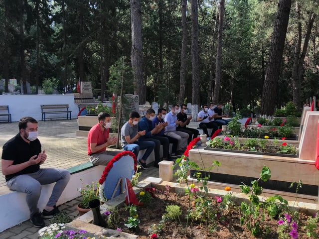 Gençlik Kolları Başkanı Cemal Yeniacun, “Mübarek Ramazan Ayı’nı bir kez daha geride bırakıyoruz. Ramazan Bayramı’nde sokağa çıkma yasağı olduğu için bugün arkadaşlarımızla birlikte şehitlerimizi ziyaret ettik. Bu vatan için canlarını feda eden aziz şehitlerimizi dualarla andık. “ dedi.