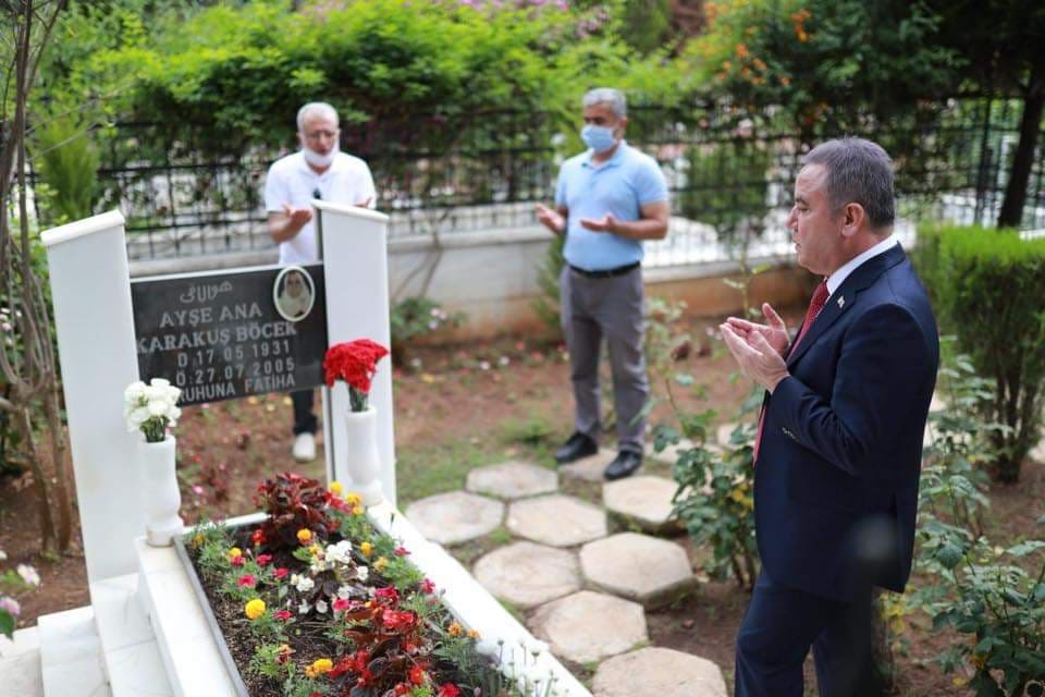 Antalya Büyükşehir Belediye Başkanı Muhittin Böcek,Ramazan Bayramı öncesi aile mezarlığını ziyaret etti.kendi aile bireylerinin mezarına ve yakınlarda bulunan diğer mezarların üzerine çiçek koydu ve dua okudu.