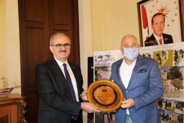Normalleşme sürecine girdiğimiz Covid-19 sürecini Antalya Valisi Münir Karaloğlu’nun çok iyi yönettiğini belirten Başkan Şahin, “Antalya Valimiz Sayın Münir Karaloğlu’nu ziyaret ederek, salgın sürecinde yaptığı başarılı çalışmalar ile bölgemizde toplum sağlığının korunmasındaki üstün gayretleri için teşekkür plaketi takdim ettik. Ziyarette ayrıca başta lokanta ve restoranların çalışma saatlerinin uzatılması, otobüslerde olduğu gibi taksilerde de normal düzene geçilmesi gibi bazı konularda taleplerimizi kendisine ilettik. Sayın Valimiz de taleplerimizin biran önce karşılanması için ilgili bakanlıklarla temasa geçerek gereğini yapacağını ifade etti. Her zaman taleplerimize olumlu dönüş yapan ve salgın sürecinde bizlerle dirsek temasını hiç kesmeyen Sayın Valimize gösterdiği yakın ilgi ve misafirperverliği için bir kez daha teşekkür ederim” diye konuştu.