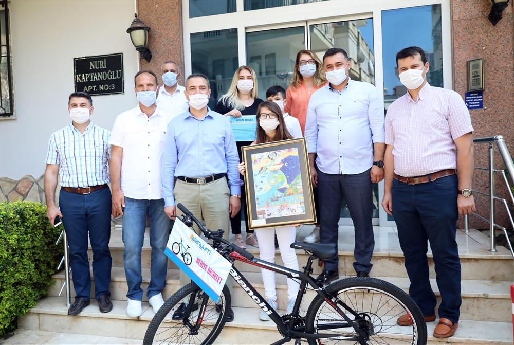 Alanya Belediyesi ve Alanya İlçe Milli Eğitim Müdürlüğü iş birliği ile düzenlenen geri dönüşüm temalı “Alanya’da Geri Dönüşüm” adlı yarışmada sonuçlar açıklanırken ödüller farklı bir etkinlikle verildi. Yarışma için başvuran öğrencilerin resimleri evden alınarak değerlendirildi. Koronavirüs nedeniyle toplu tören düzenlenemedi. Ancak dereceye giren yarışmacılar yine evlerinde ziyaret edilerek hediyeleri takdim edildi. Alanya Belediye Başkanı Adem Murat Yücel’e dereceye giren öğrencileri ziyaretinde, İlçe Milli Eğitim Müdürü Hüseyin Er, Alanya Belediyesi Çevre Koruma ve Kontrol Müdürü Sevda Erdoğmuş, Alanya Belediyesi Temizlik İşleri Müdürü Adem Demir, Okul Müdürleri ve öğretmenler eşlik etti.