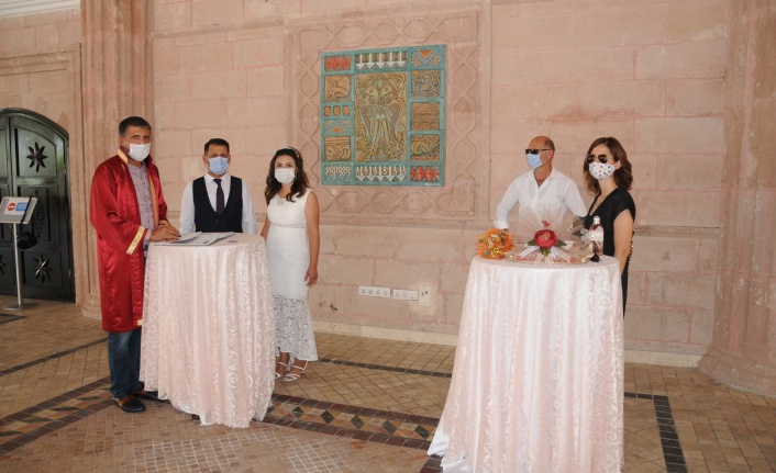 Tedbirleri üst seviyeye çıkartan belediye, Damlataş'taki Nikah Dairesi’ni de kapattı. Nikâhlar sosyal mesafe ve maske kuralına uygun olarak az sayıda davetli kabul edilerek Alanya Kültür Merkezi (AKM) girişinde kıyılıyor.