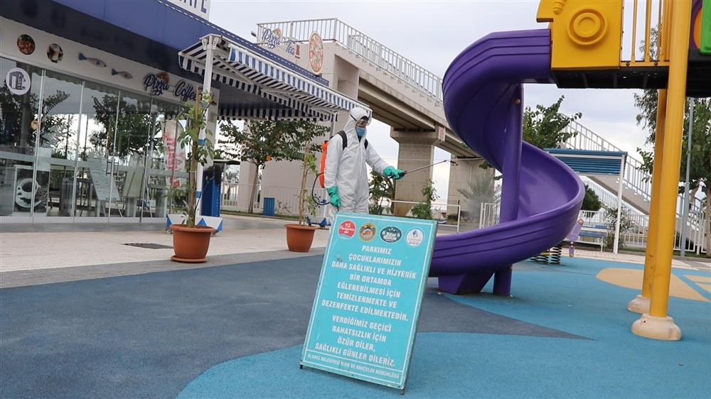 Alanya Belediyesi Park ve Bahçeler Müdürü Nazmi Uyar, yaptığı açıklamada vatandaşların ve çocukların yoğun olarak bulunduğu ortamların, hijyenik şartlara sahip olması amacıyla gerçekleştirilen dezenfekte işlemlerinin, periyodik aralıklarla sürdürüldüğünü söyledi. Uyar: “Uluslararası kalite belgeli ve Sağlık Bakanlığı ruhsatlı dezenfektan solüsyonlarımızla halkımızın ve çocuklarımızın yoğun olarak bulunduğu parklar, çocuk oyun grupları, spor alanları, yürüyüş ve mesire alanlarımızı periyodik olarak dezenfekte ediyoruz. Son günlerde artan vakalar nedeniyle yoğun olarak çalışmalarımızı sürdürüyoruz. Bütün vatandaşlarımızı tedbirli olmaya davet ediyoruz.” dedi.
