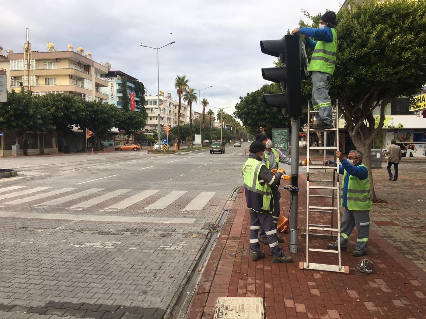 Antalya Büyükşehir Belediyesi, Alanya merkezindeki trafik sinyalizasyon üniteleri tek tek yenileniyor...