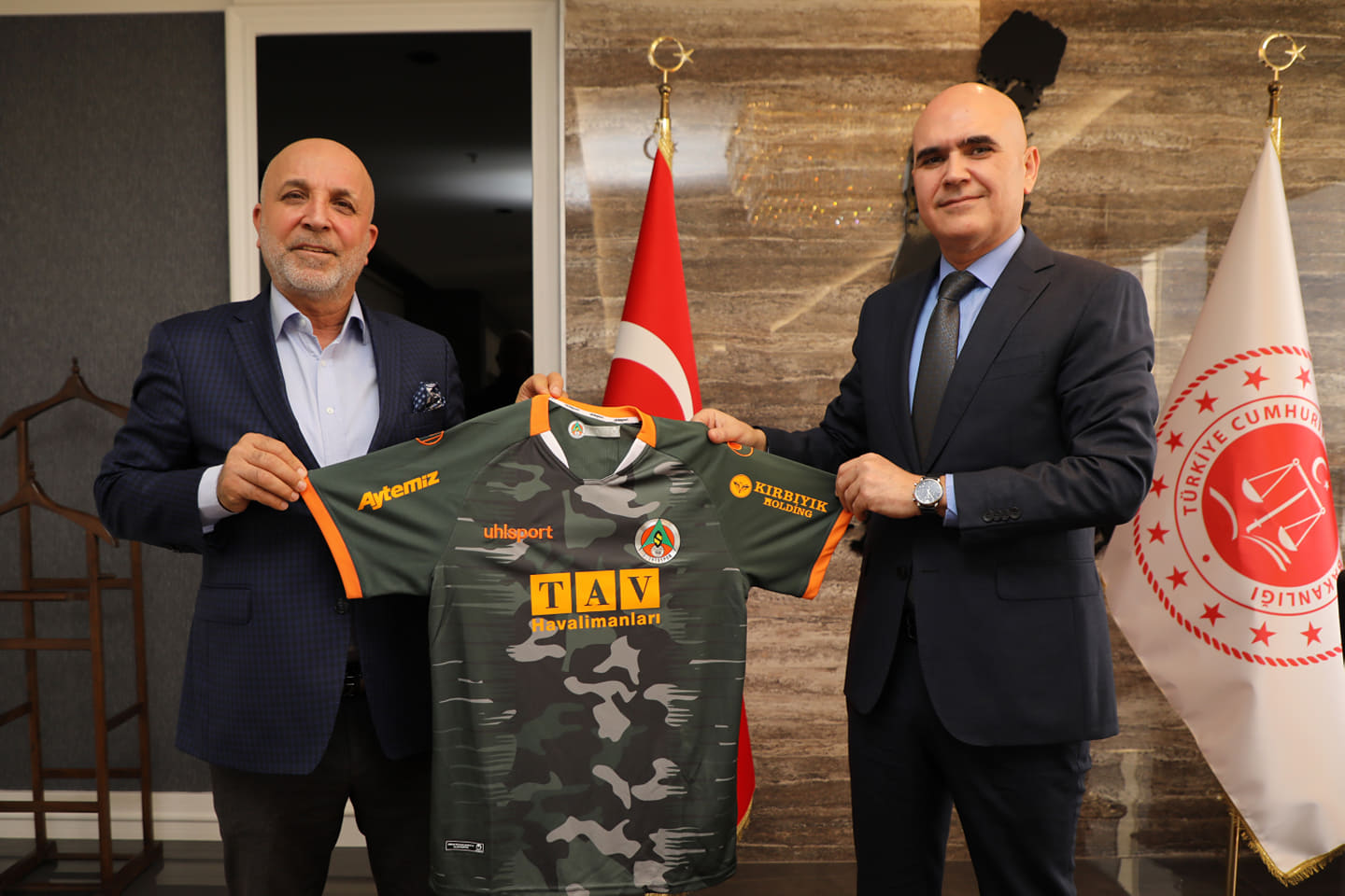 Aytemiz Alanyaspor Başkanı Hasan Çavuşoğlu, 2. Başkan Kamil Köseoğlu, Asbaşkan Bilal Gömeç ve Yönetim Kurulu Üyesi Enver Vural, Alanya Cumhuriyet Başsavcısı Celal Tekin'e 'hayırlı olsun' ziyaretinde bulundu.