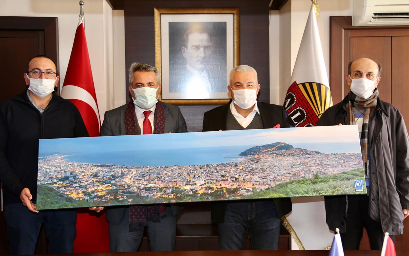Alanya Serbest Muhasebeci ve Mali Müşavirler Odası (ALSMO) Başkanı Kerim Gökçeoğlu, ALTSO Başkanı Mehmet Şahin’i ziyaret ederek kurumlararası işbirliğine yaptığı katkılar nedeniyle teşekkür etti. Gökçeoğlu aynı zamanda Mali Müşavir olan Alanya’nın tanınmış fotoğraf sanatçısı Ali Aral’ın çektiği özel Alanya fotoğrafını da Başkan Şahin’e hediye etti...