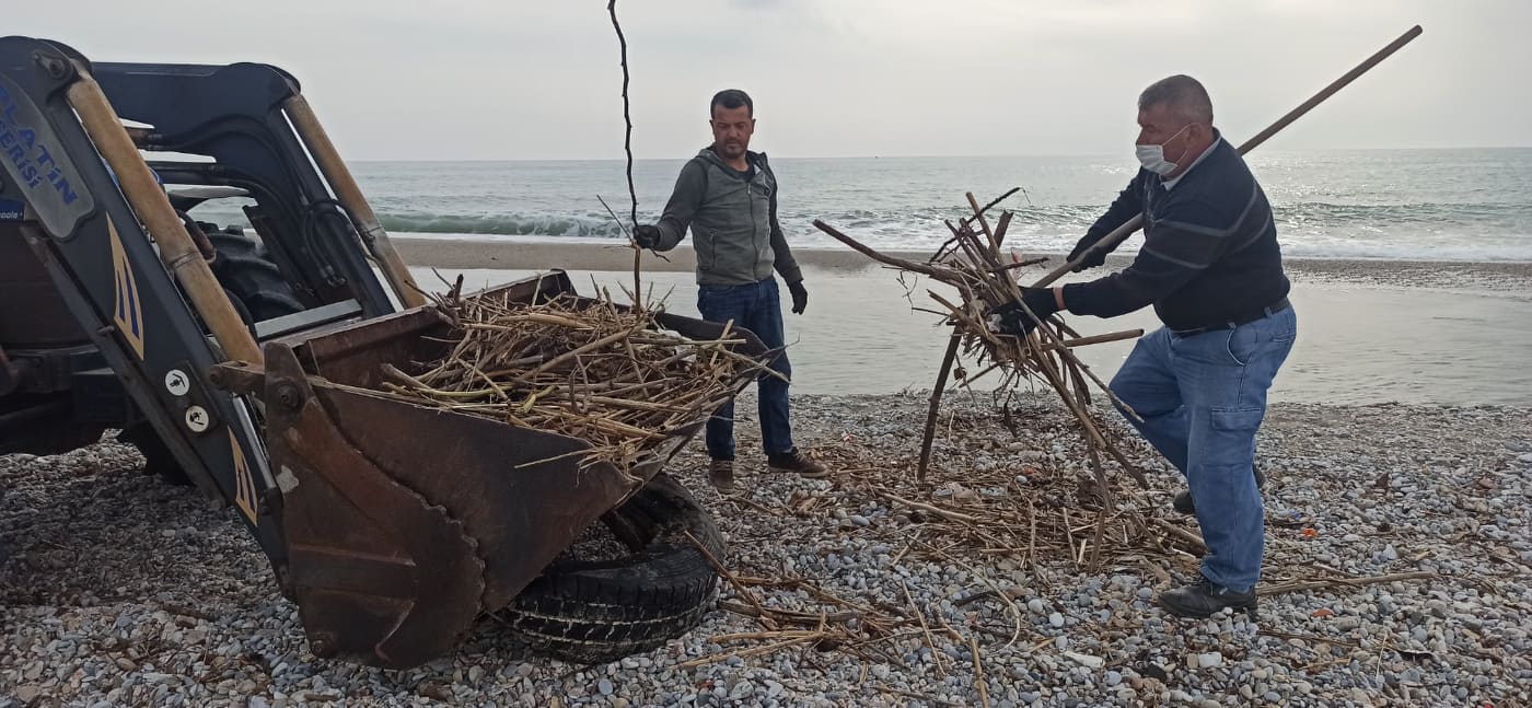 Kıyıya vuran atıklar ALTİD--Alanya Turistik İşletmeciler Derneği temizlik ekibi tarafından bertaraf ediliyor...