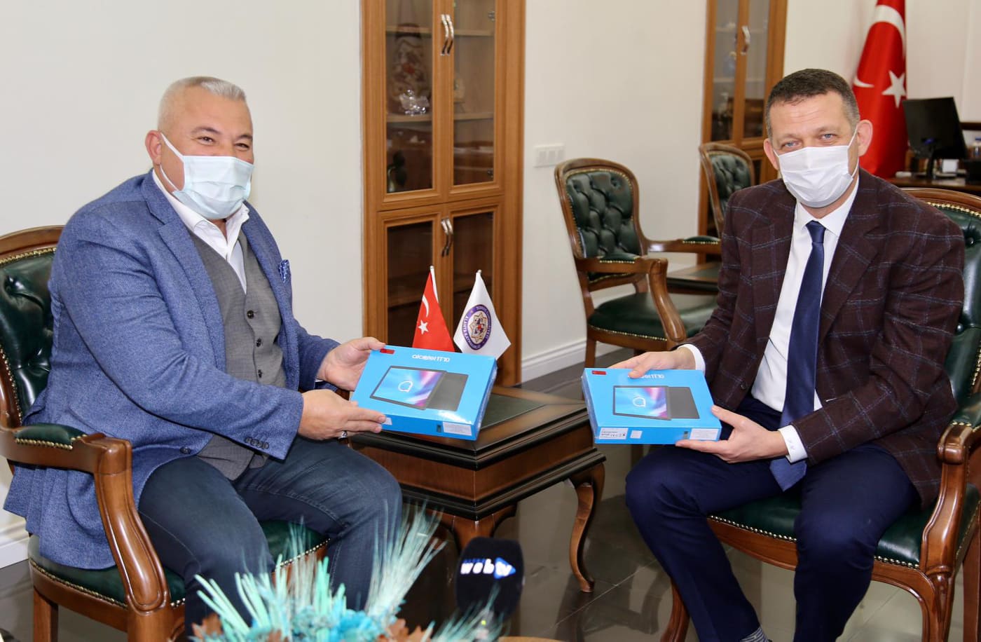 Alanya Ticaret ve Sanayi Odası Başkanı Mehmet Şahin, bugün bir kez daha Alanya Kaymakamlığı tarafından belirlenen ihtiyaç sahibi öğrencilere dağıtılmak üzere temin ettiği tabletleri Kaymakam Dr Fatih Ürkmezer’e teslim etti...